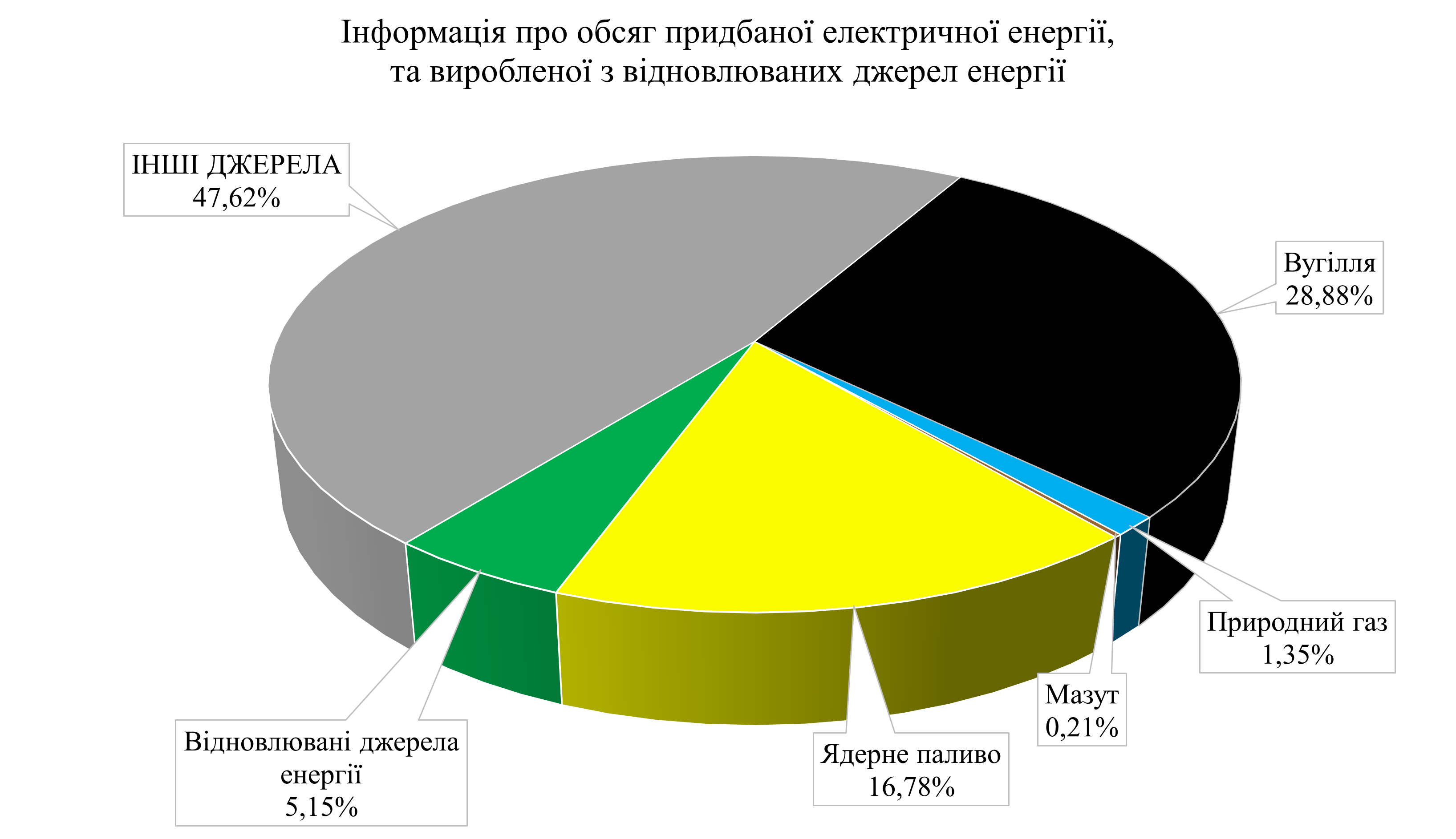 Інформація про обсяг придбаної електричної енергії, та виробленої з відновлюваних джерел енергії
